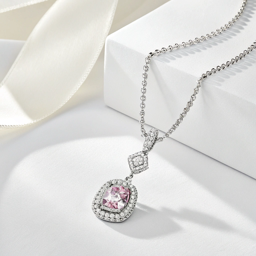 This stunning Pink Gemstone Pendant Necklace features a high-quality silver-tone chain and a striking teardrop pink gemstone surrounded by shimmering accents. Perfect for special occasions or as a thoughtful gift, this necklace adds a touch of charm and elegance to any outfit.